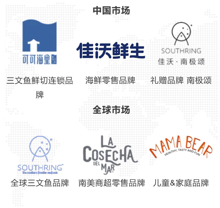一直以來,佳沃食品布局全球海洋蛋白產業,以原產地供給的優勢,打造以三文魚為代表的高營養海洋蛋白矩陣。采取國內國外雙循環戰略,構建全球供應鏈和銷售網絡。在國內,擁有海鮮零售品牌“佳沃鮮生”、高端禮贈品牌“南極頌”及三文魚鮮切連鎖品牌“可可海里”;在國外,三文魚產品銷售覆蓋歐美、日本等國家或地區,以及專注南美市場的零售品牌和兒童&家庭消費品牌。